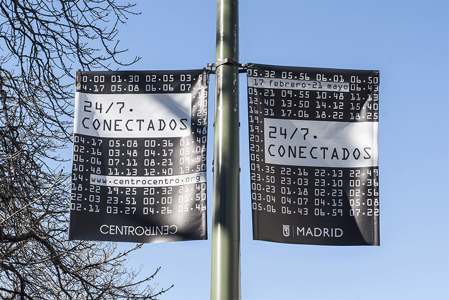 “La exposición 24/7. Conectados reflexiona sobre cómo los límites que separan nuestro espacio-tiempo personal y laboral están cada vez más diluidos debido a herramientas como Internet, el correo electrónico y las redes sociales.” Nota de prensa