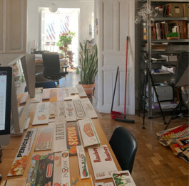 Influenciado por su formación en diseño industrial (Rhode Island School of Design), visualiza los proyectos como un todo. Por ejemplo, realiza planos detallados de instalaciones y objetos, y piensa en los materiales de un libro y su encuadernación desde el inicio del diseño.